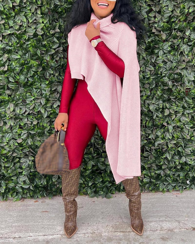Style:Casual Type:Sweater Material:Acrylic Neckline:Turtleneck Sleeve Style:Long Sleeve,Split Sleeve Length:Asymmetrical Pattern Type:Plain Fit Type:Regular Occasion:Daily Package Include:1*Sweater