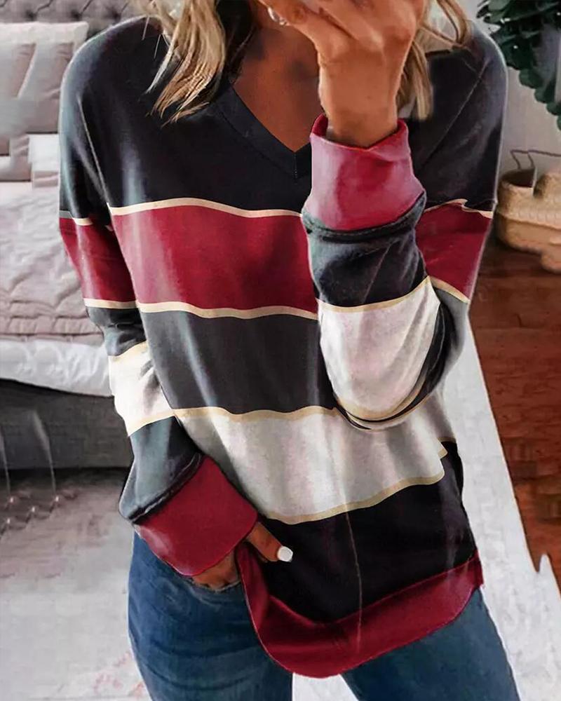 Style:Casual Type:Tee Material:Polyester Neckline:V-Neck Sleeve Style:Long Sleeve Length:Regular Pattern Type:Colorblock,Striped Fit Type:Regular Occasion:Daily Package Include:1*Top