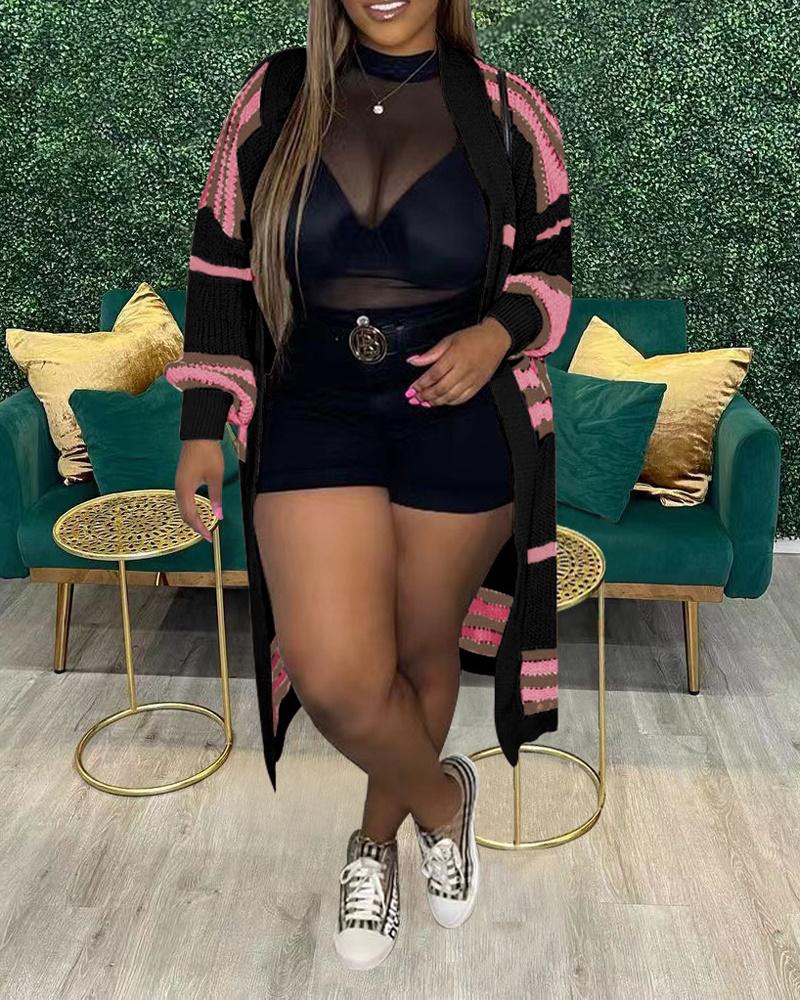 Eyelash Lace Trim Hollow Out Colorblock Sweater