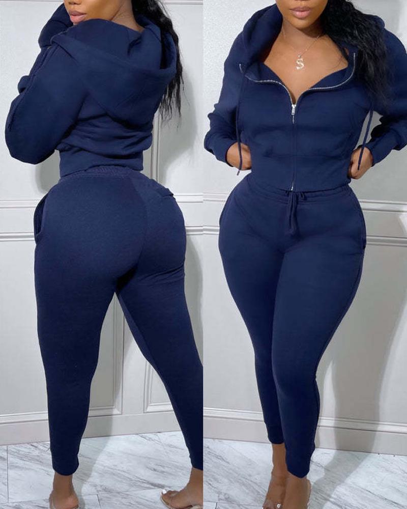 Style:Casual,Sporty Type:Sweatpants Sets,Sweatshirt Sets Material:Polyester Neckline:Hooded Sleeve Style:Long Sleeve Length:Long Pattern Type:Plain Decoration:Drawstring,Pocket,Zipper Fit Type:Regular Occasion:Daily Package Include:1*Pants Set