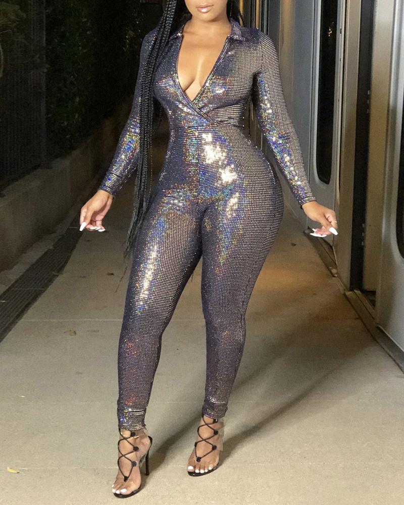 Double Breasted Long Sleeve Blazer Jumpsuit