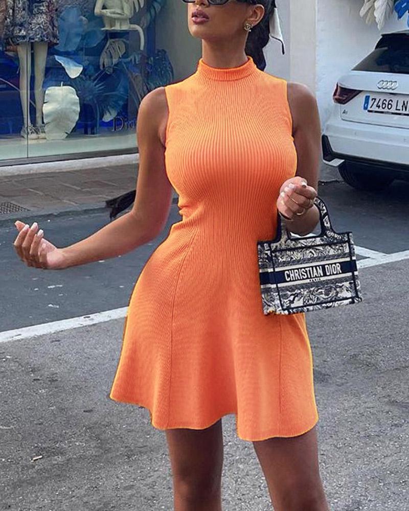 Style:Sexy Type:A Line Material:Polyester Neckline:High Neck Sleeve Style:Sleeveless Length:Mini Pattern Type:Plain Fit Type:Regular Occasion:Daily Package Include:1* Dress