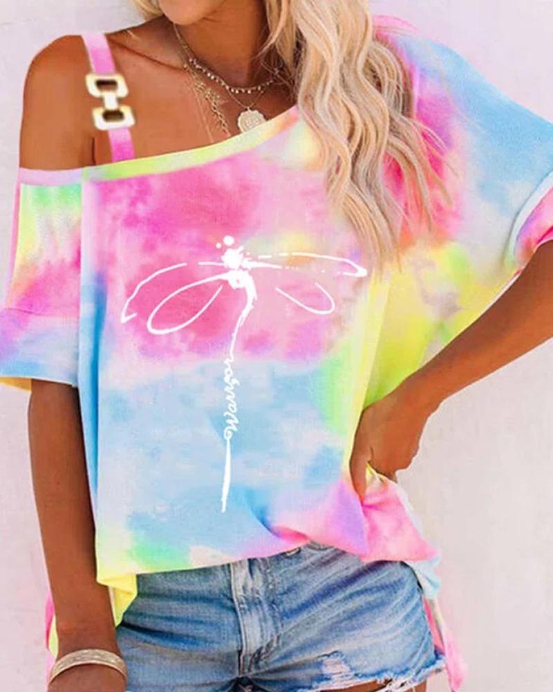 Style:Chic Type:Regular Material:95%Polyester,5%Elastane Neckline:Cold Shoulder Sleeve Style:Short Sleeve Length:Regular Pattern Type:Floral,Letter,Tie Dye Decoration:Chain Fit Type:Regular Occasion:Daily Package Include:1*T-Shirt