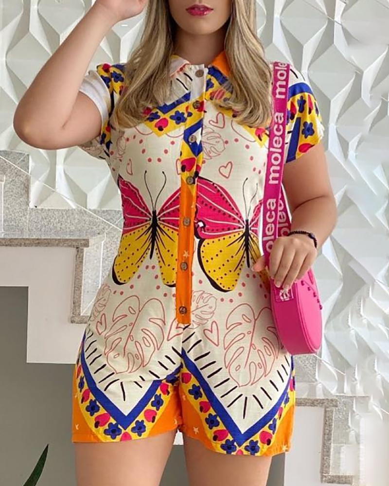 V-Neck Thick Strap Leaf Print Skinny Romper