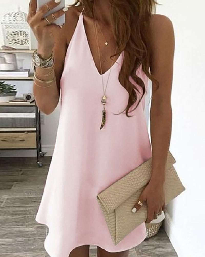 Style:Casual Type:Straight Material:Polyester Neckline:V-Neck Sleeve Style:Sleeveless Length:Mini Pattern Type:Plain Fit Type:Regular Occasion:Daily Package Include:1* Dress