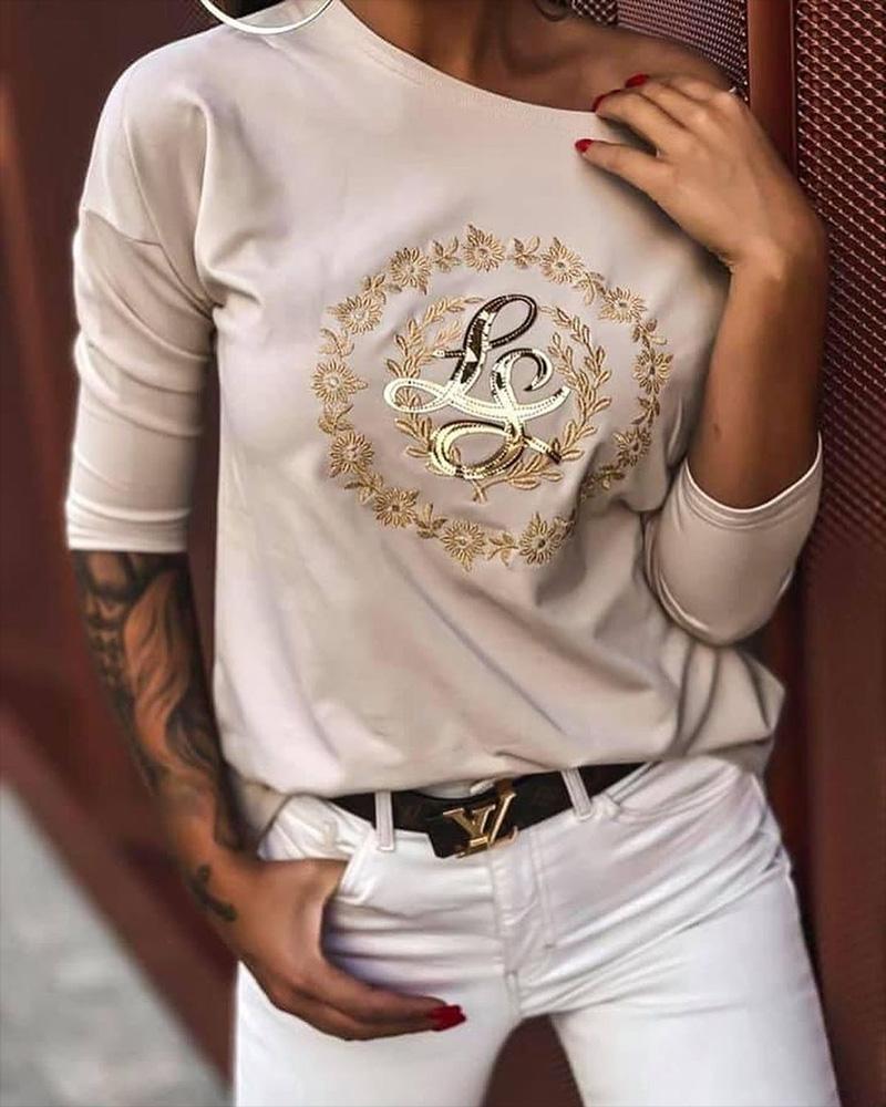 Style:Casual Type:Tee Material:95%Polyester,5%Elastane Neckline:Round Neck Sleeve Style:Long Sleeve Length:Regular Pattern Type:Floral,Letter Decoration:Embroidery Fit Type:Regular Occasion:Daily Package Include:1*T-Shirt