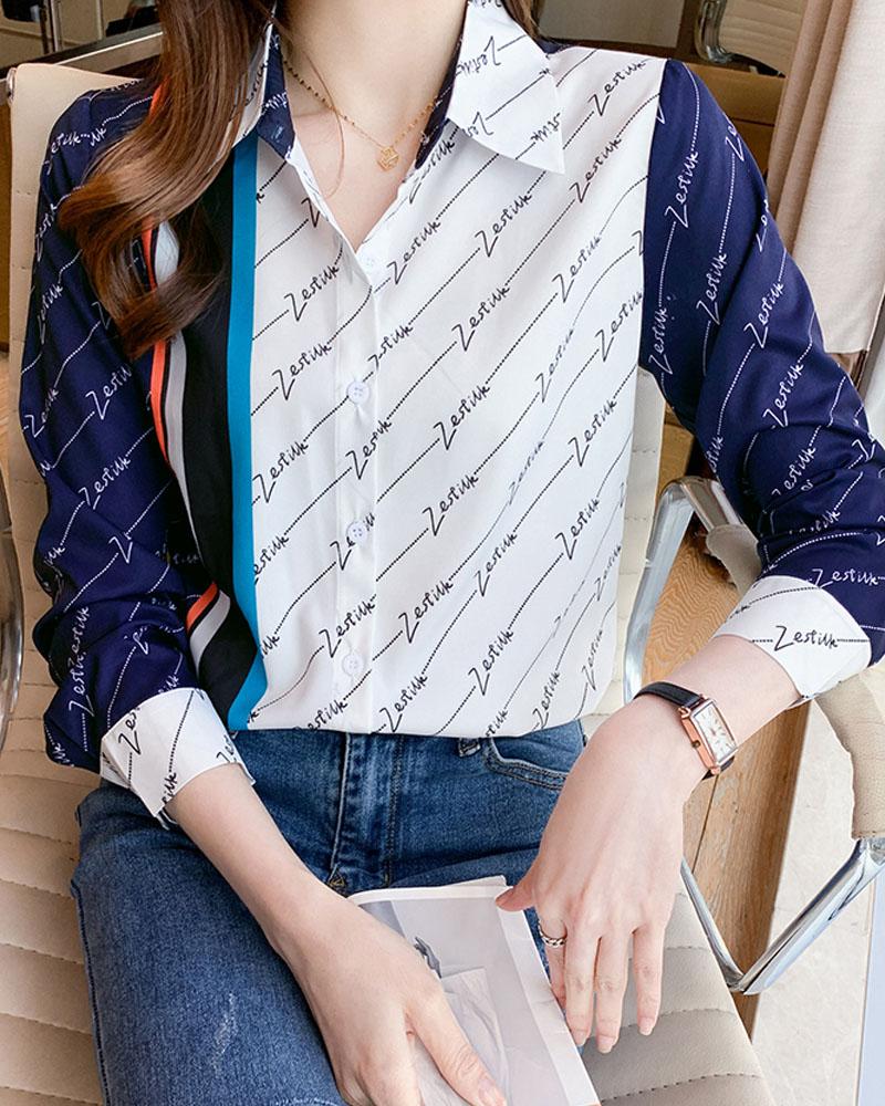 Style:Chic,Elegant Type:Shirt Material:Polyester Neckline:Turn-down Collar Sleeve Style:Long Sleeve Length:Regular Pattern Type:Letter Decoration:Button Fit Type:Regular Occasion:Daily,Work Package Include:1*Shirt