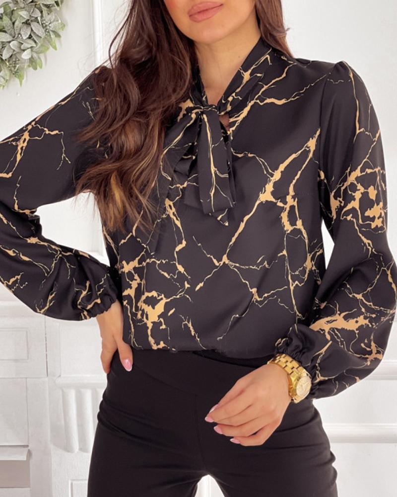 Style:Casual,Chic Type:Shirt Material:Polyester Neckline:Tie Neck Sleeve Style:Long Sleeve Length:Regular Pattern Type:Abstract,Marble Fit Type:Regular Occasion:Daily Package Include:1*Shirt