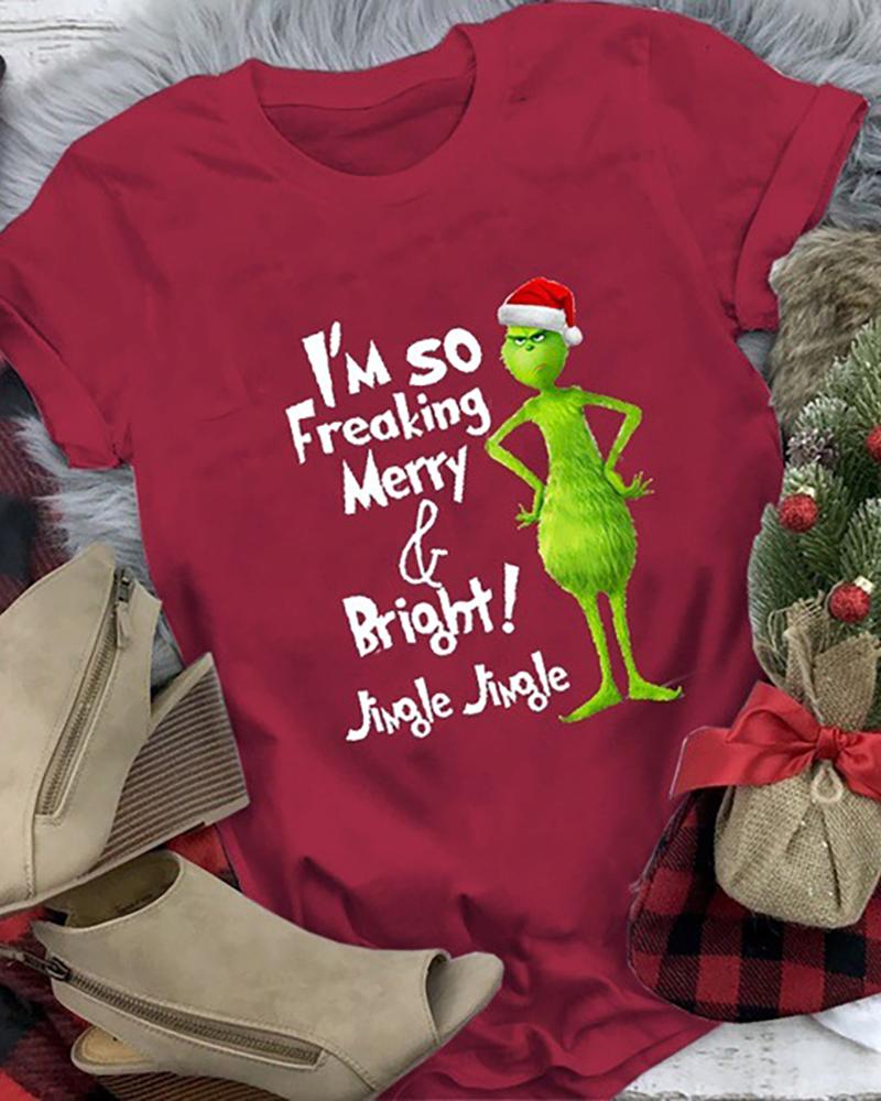 Christmas Graphic Letter Print Short Sleeve T-shirt