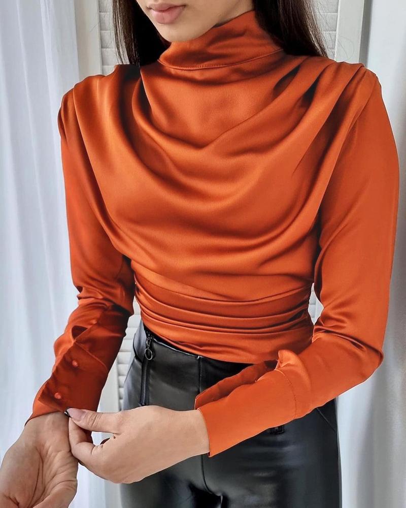 Style:Chic Type:Blouses Material:95%Polyester,5%Elastane Neckline:High Neck Sleeve Style:Long Sleeve Length:Regular Pattern Type:Plain Decoration:Ruched Fit Type:Regular Occasion:Daily Package Include:1* Blouse