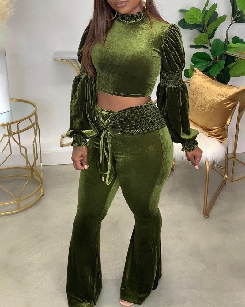 Ruffle Hem Top & High Waist Pants Set