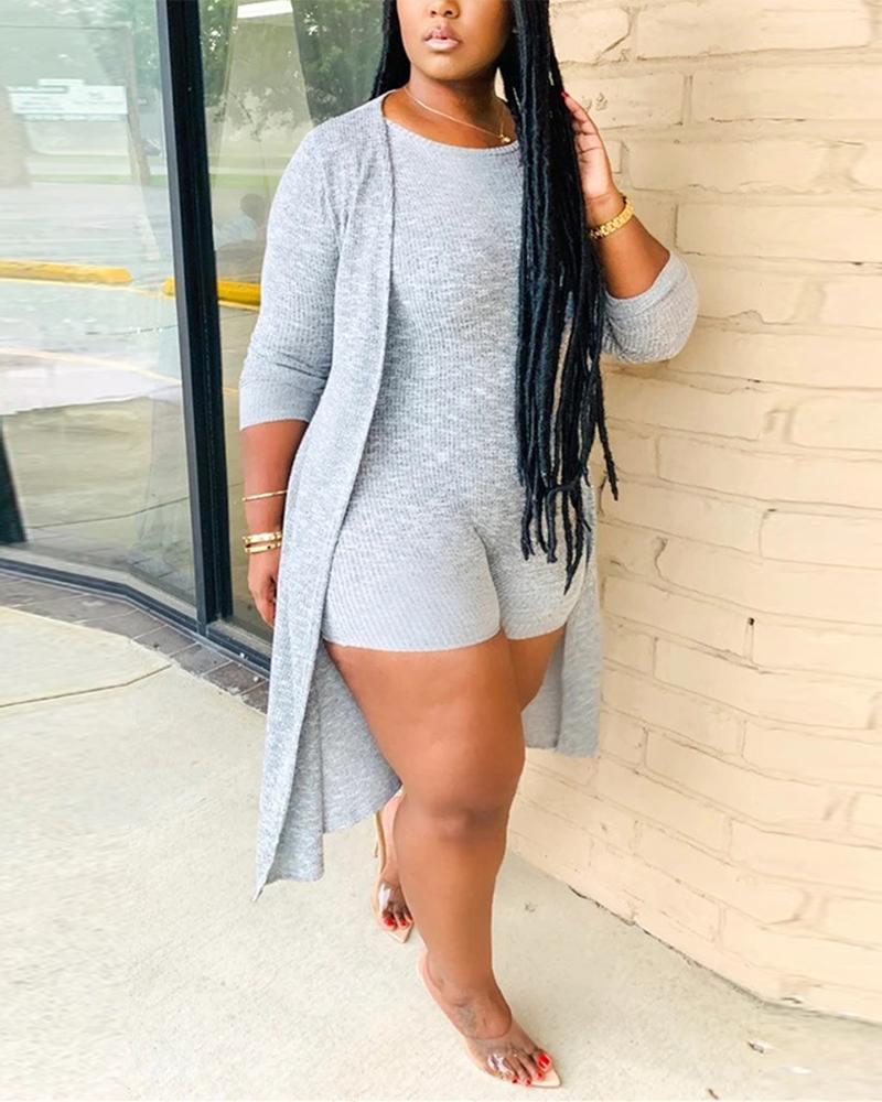 Button Down Asymmetrical Slit Shirt & Shorts Set