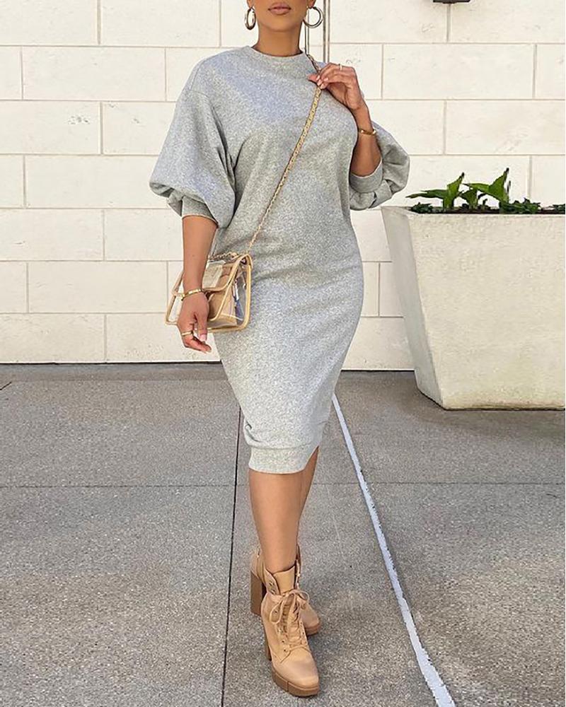 Lantern Sleeve O Neck Casual Dress