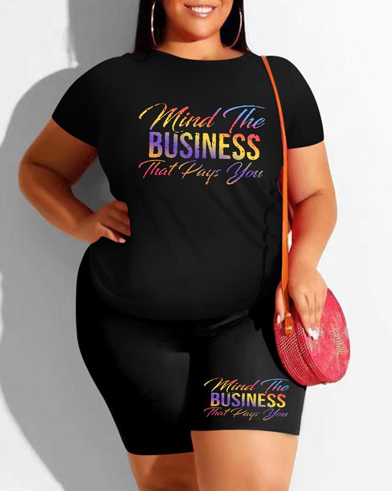 Letter Band Patch Fishnet Design Top & Shorts Set