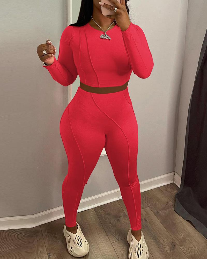 Style:Chic Type:Pants Sets Material:Polyester Neckline:O-neck Sleeve Style:Long Sleeve Length:Long Pattern Type:Plain Decoration:Contrast Piping Fit Type:Skinny Occasion:Daily Package Include:Pants Set