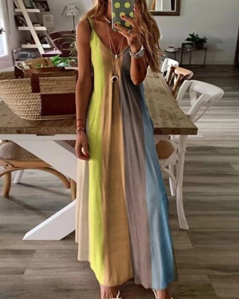 Colorblock V-Neck Spaghetti Strap Maxi Dress