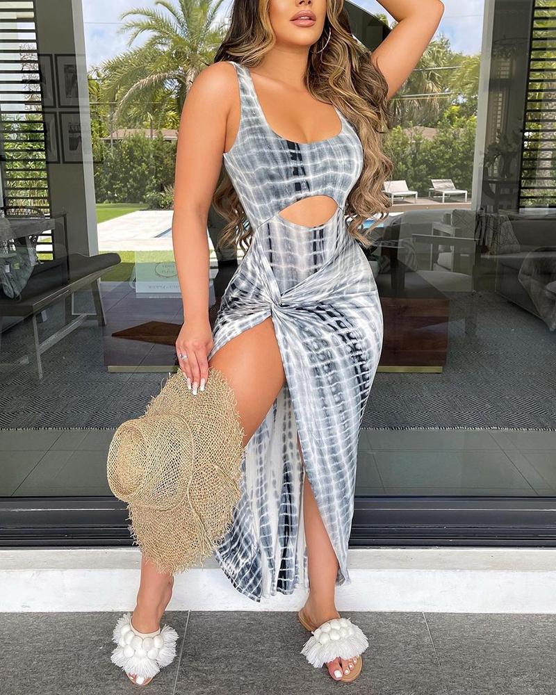 Tie Dye Sleeveless Cut-out Midi Sit Dress