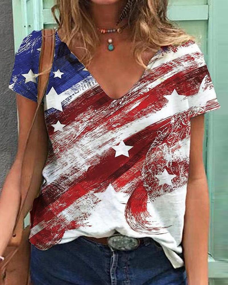 Style:Casual Type:Tee Material:Polyester Neckline:V-Neck Sleeve Style:Short Sleeve Length:Regular Pattern Type:Colorblock,Graphic Fit Type:Regular Occasion:Daily Package Include:1*T-Shirt