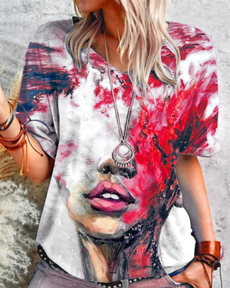 Figure Patterns Print Short Sleeve Loose T-shirts