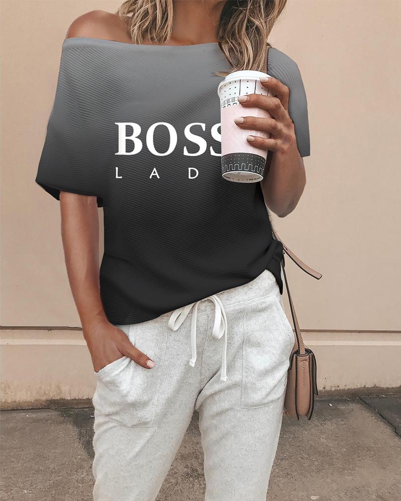 Figure Letter Print Short Sleeve Casual T-shirt