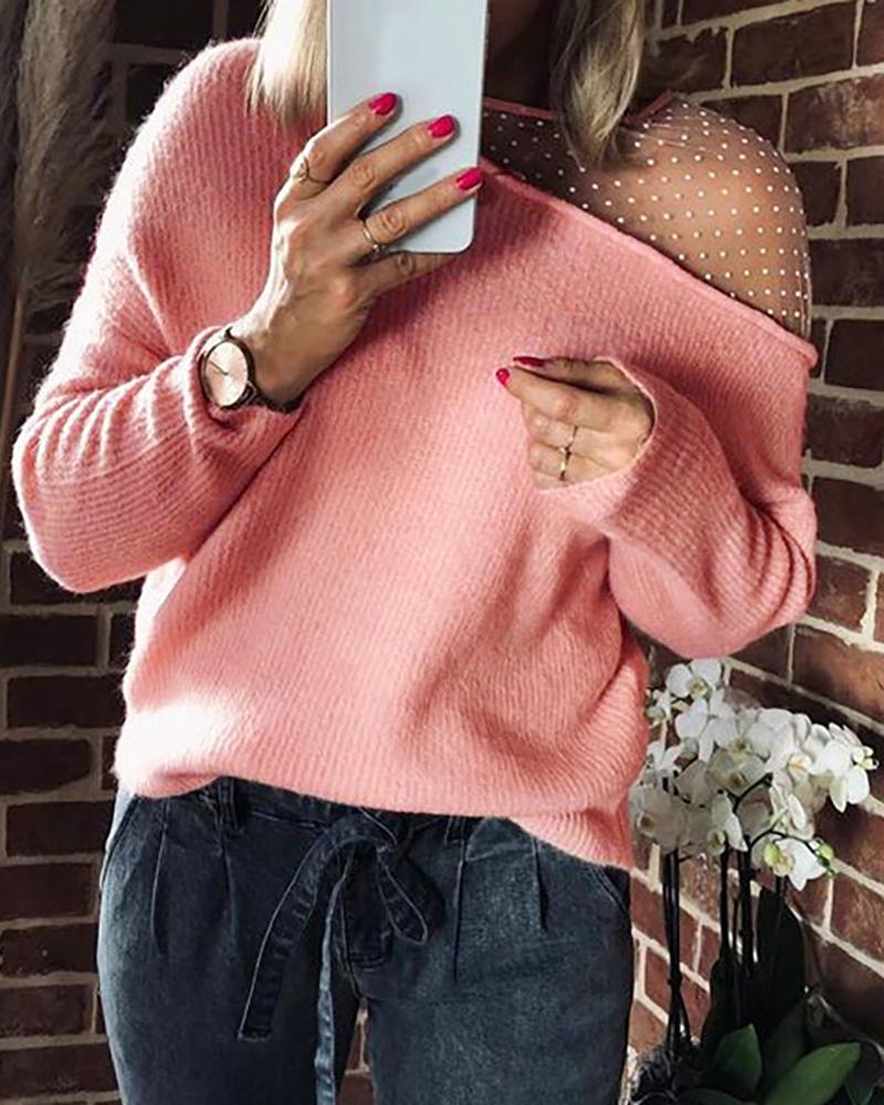 Style:Casual Type:Sweater Material:Polyester,Mesh Neckline:Round Neck Sleeve Style:Long Sleeve Length:Regular Pattern Type:Polka Dot Decoration:Dot Mesh,Tied Detail Fit Type:Regular Occasion:Daily Package Include:1*Sweater