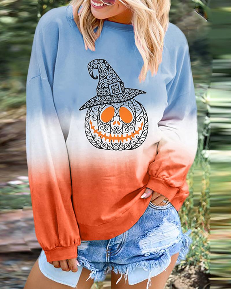 Style:Basic Type:Sweatshirt Material:Polyester Neckline:Round Neck Sleeve Style:Long Sleeve Length:Regular Pattern Type:Halloween,Pumpkin Print,Bat Print,Gradient Color,Colorblock,Oversized Fit Type:Fit Occasion:Going Out,Halloween Party Package Include:1*Sweatshirt