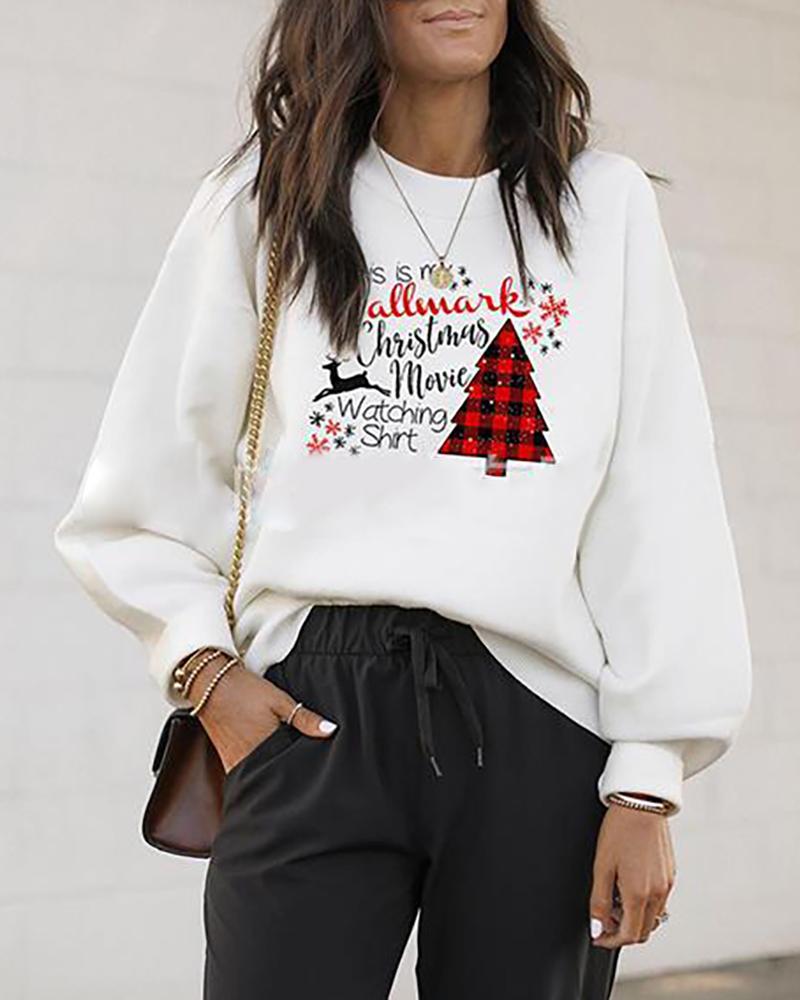 Christmas Long Sleeve Casual Letter Tree Print Sweatshirt