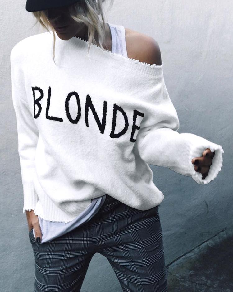 Letter Print Fringe Hem Casual Sweaters