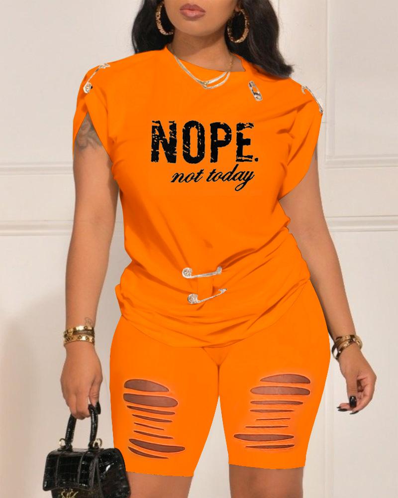 Nope Not Today Print Casual Top & Shorts Set