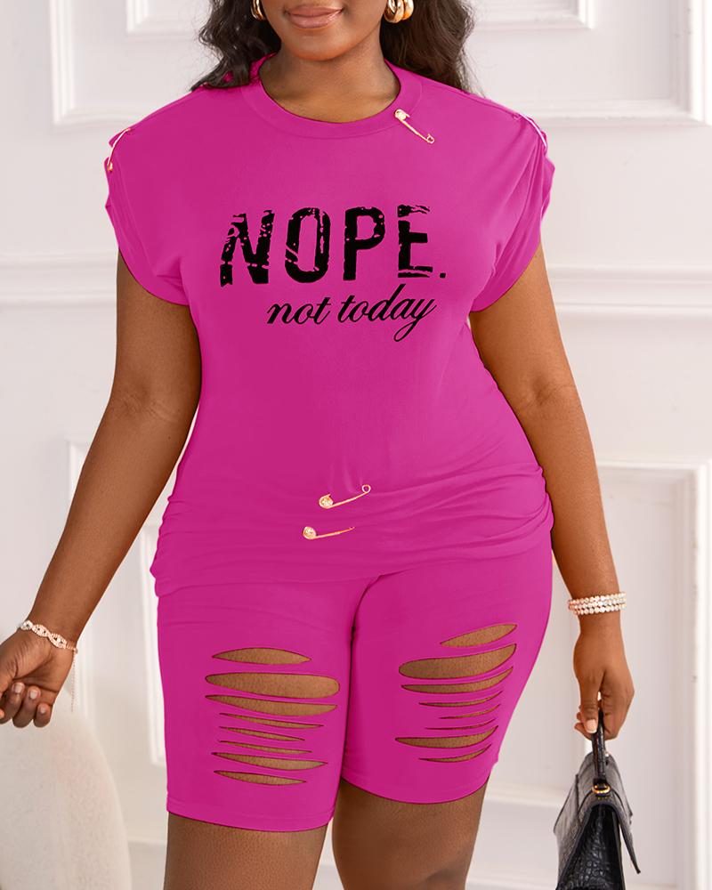 Nope Not Today Print Casual Top & Shorts Set