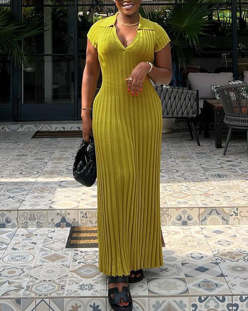 Style:Casual Type:Straight Material:Ribbed Neckline:Turn-down Collar Sleeve Style:Short Sleeve Length:Maxi Pattern Type:Plain Decoration:Others Fit Type:Regular Occasion:Daily Package Include:1* Dress Fabric Elasticity:Slight Stretch Sheer:No Care Instructions:Machine wash or professional dry clean Waist Line:Natural