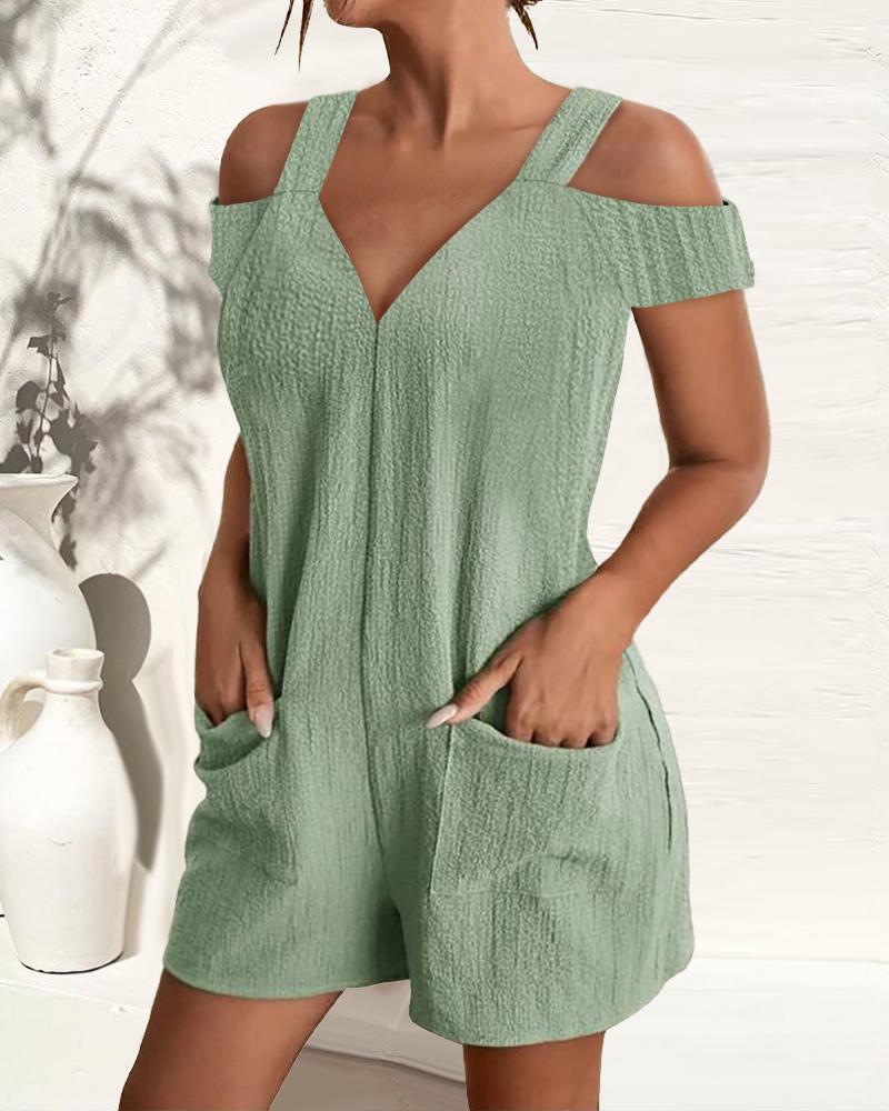 V-Neck Drawstring Half Sleeve Romper