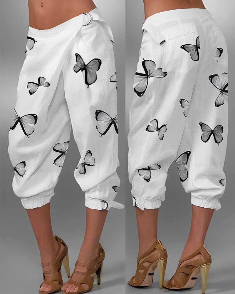 Style:Casual Type:Cuffed Material:100%Cotton Length:Capris Pattern Type:Butterfly Decoration:Buckle,Pocket Fit Type:Regular Occasion:Daily Package Include:1*Pants Fabric Elasticity:Slight Stretch Sheer:No Care Instructions:Machine wash or professional dry clean