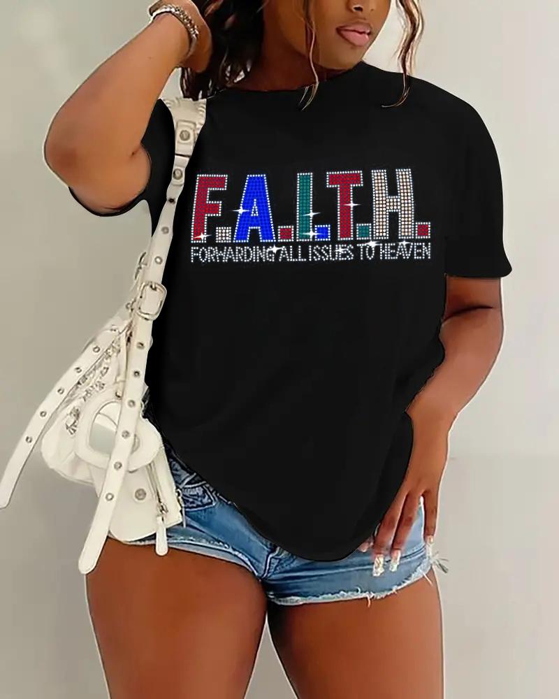 Style:Basics,Casual Type:Regular Material:95%Polyester,5%Elastane Neckline:Round Neck Sleeve Style:Short Sleeve Length:Regular Pattern Type:Letter Decoration:Rhinestone Fit Type:Regular Occasion:Daily Package Include:1*T-Shirt Fabric Elasticity:Non-Stretch
