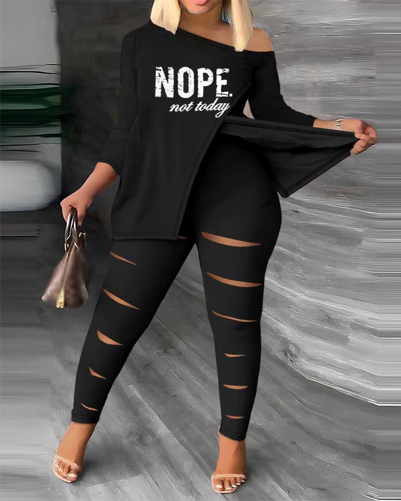 Plus Size Nope Not Today Split Hem Top & Pants Set