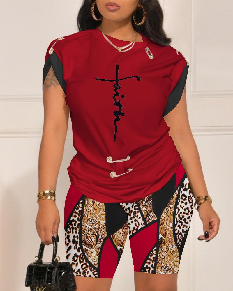 Faith Baroque Leopard Print Top & Shorts Set