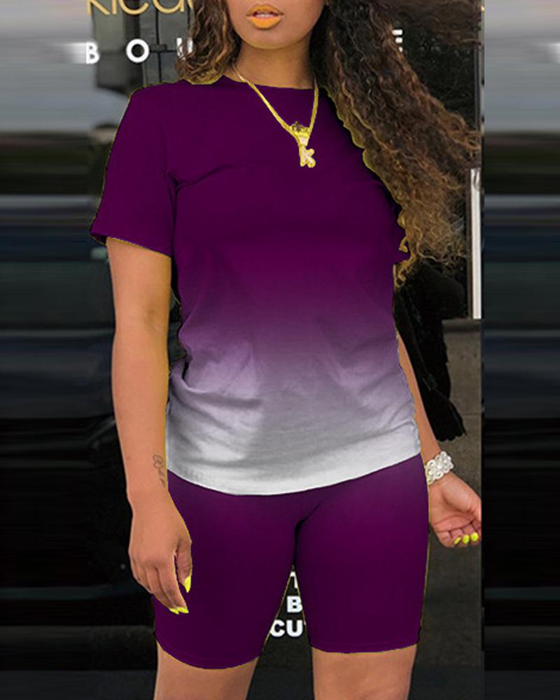 Style:Basics,Casual Type:Shorts Set Material:97%Polyester,3%Spandex Neckline:O-neck Sleeve Style:Short Sleeve Length:Above Knee Pattern Type:Ombre,Tie Dye Decoration:Others Fit Type:Regular Occasion:Daily Package Include:1*Shorts Set Fabric Elasticity:Medium Stretch Sheer:No Care Instructions:Machine wash or professional dry clean