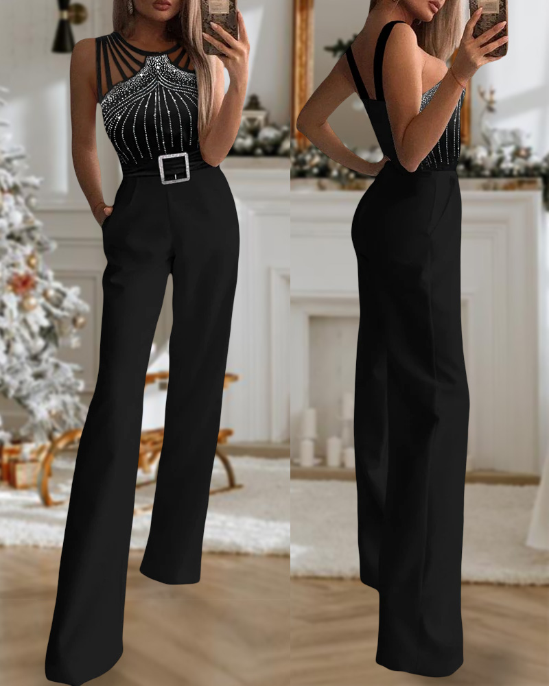 Multi Strap Sleeveless Rhinestone Bootcut Jumpsuit
