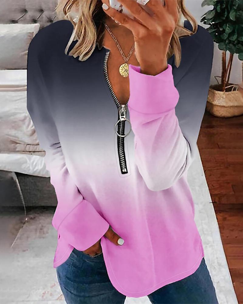 Ombre Long Sleeve Zipper Design Top