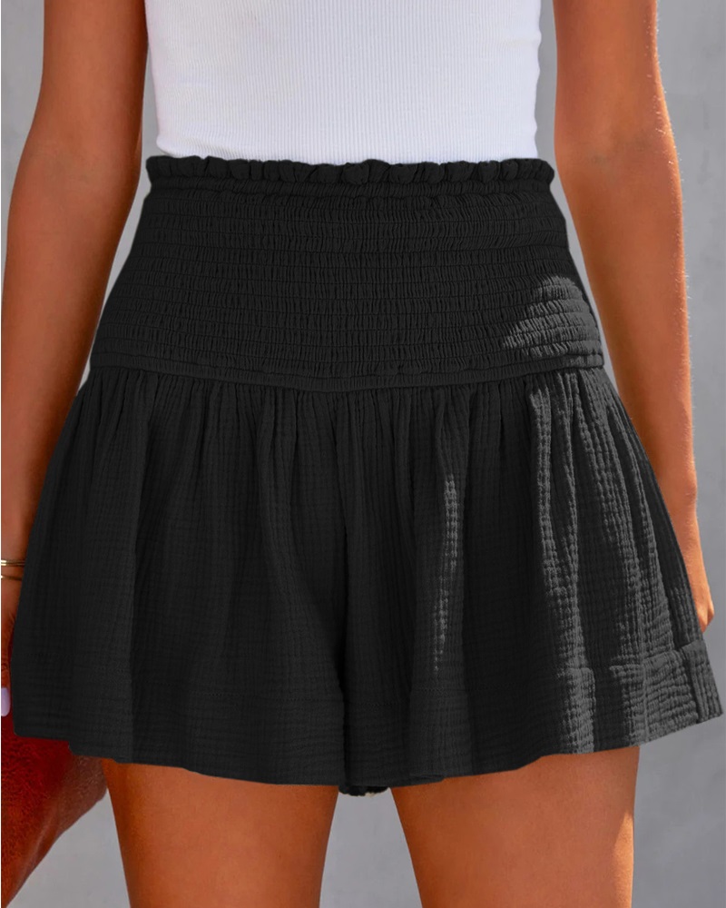 Style:Casual Type:Shorts Material:Polyester Length:Above Knee Pattern Type:Plain Decoration:Ruched,Shirred Fit Type:Regular Occasion:Daily Package Include:1*Shorts Fabric Elasticity:Slight Stretch Sheer:No Care Instructions:Machine wash or professional dry clean Waist Line:High Waist