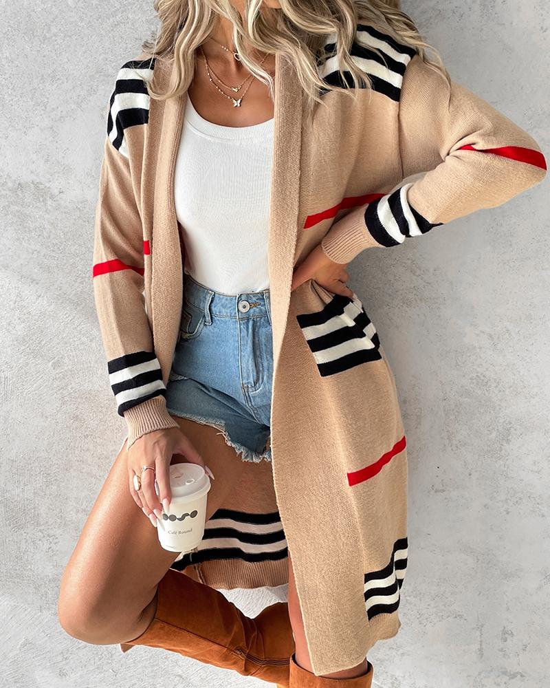 Style:Casual,Chic Type:Cardigan Material:Acrylic Neckline:Open Front Sleeve Style:Long Sleeve Length:Long Pattern Type:Striped Decoration:Others Fit Type:Regular Occasion:Daily Package Include:1*Cardigan Fabric Elasticity:Non-Stretch Sheer:No Care Instructions:Hand wash or dry clean