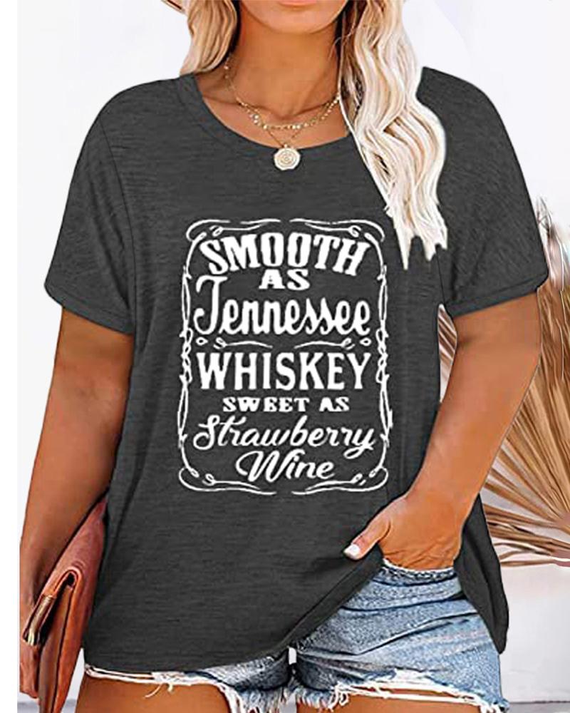 Plus Size Whiskey Sweet As Strawberry Wine Print Casual T-shirt