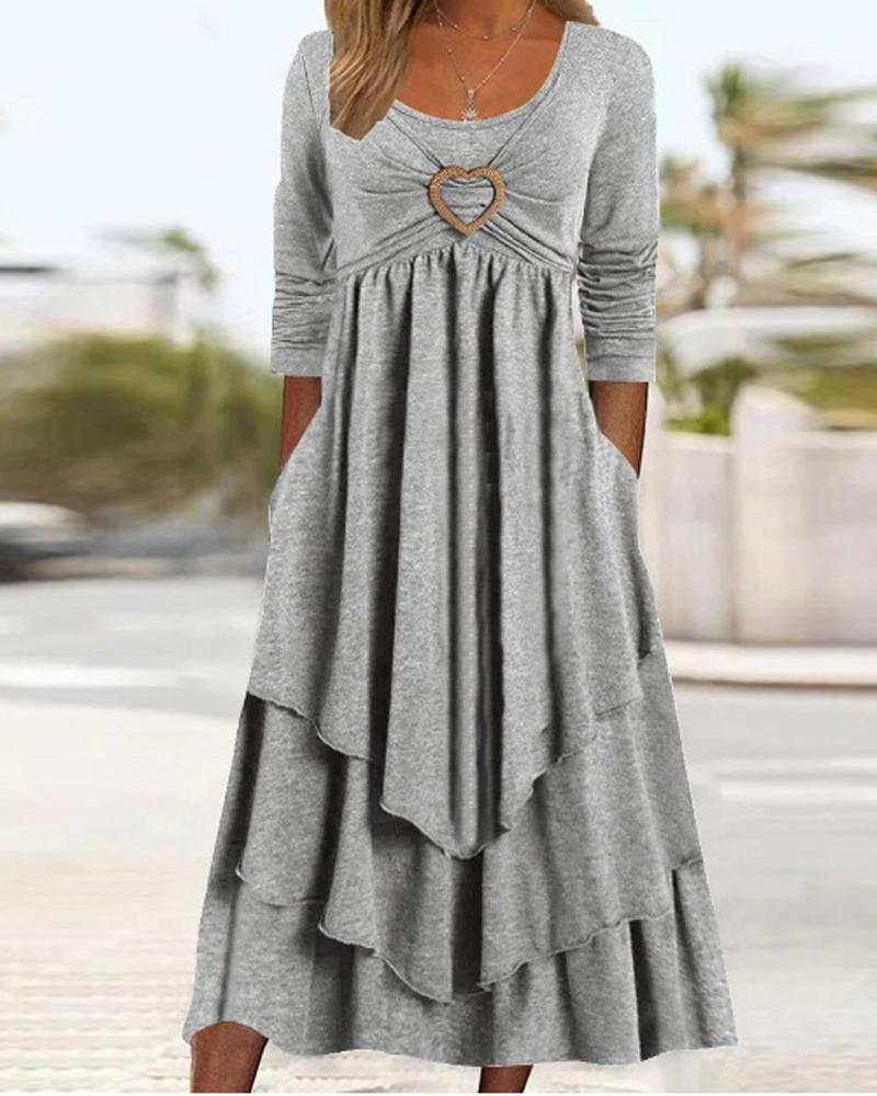 Heart-Ring Decor Layered Ruffle Hem Casual Dress
