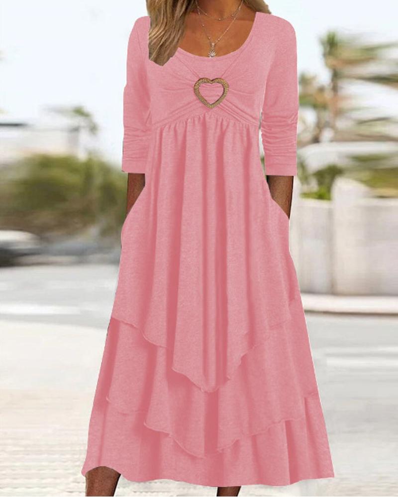 Heart-Ring Decor Layered Ruffle Hem Casual Dress