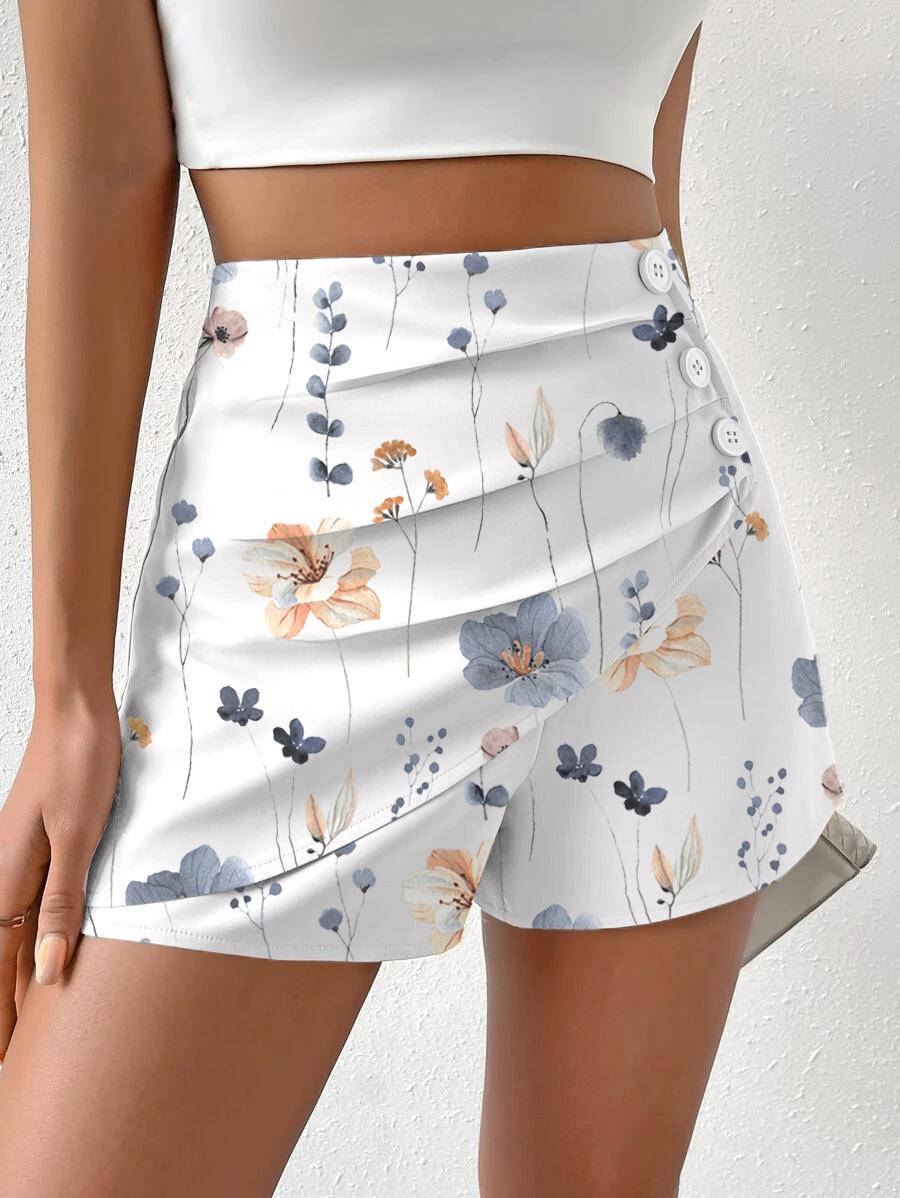Style:Chic Type:Shorts Material:100%Polyester Length:Above Knee Pattern Type:Floral Decoration:Ruched Fit Type:Regular Occasion:Daily Package Include:1*Shorts Fabric Elasticity:Non-Stretch Sheer:No Care Instructions:Machine wash or professional dry clean