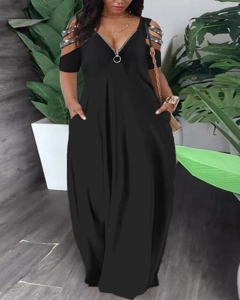 Plus Size Cold Shoulder Zipper Design Maxi Dress