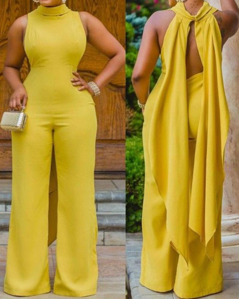 Style:Chic Type:Jumpsuit Material:100%Polyester Neckline:Mock Neck Sleeve Style:Sleeveless Length:Long Pattern Type:Plain Decoration:Backless Fit Type:Regular Occasion:Daily Package Include:1*Jumpsuit Fabric Elasticity:High Stretch Sheer:No Care Instructions:Machine wash or professional dry clean