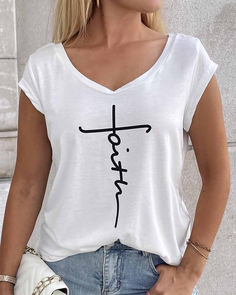 Style:Casual Type:Tee Material:97%Polyester,3%Spandex Neckline:V-Neck Sleeve Style:Short Sleeve Length:Regular Pattern Type:Letter Decoration:Others Fit Type:Regular Occasion:Daily Package Include:1*T-Shirt Fabric Elasticity:Medium Stretch Sleeve Type:Cap Sleeve Sheer:No Care Instructions:Machine wash or professional dry clean