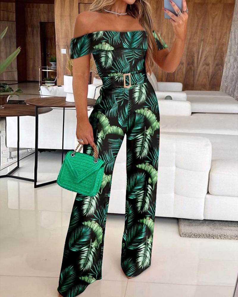 Style:Casual Type:Jumpsuit Material:100%Polyester Neckline:Off the Shoulder Sleeve Style:Short Sleeve Length:Long Pattern Type:Tropical Decoration:Others Fit Type:Regular Occasion:Daily Package Include:1*Jumpsuit Fabric Elasticity:Slight Stretch