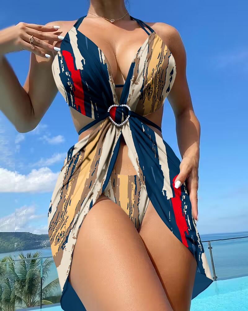 Style:Chic,Sexy Type:Triangle Material:97%Polyester,3%Spandex Neckline:Halter Sleeve Style:Sleeveless Length:Regular Pattern Type:Tie Dye,Striped Decoration:Buckle Fit Type:Skinny Occasion:Beach,Vacation Package Include:3PCS Swimwear Fabric Elasticity:High Stretch Sheer:No Care Instructions:Machine wash or professional dry clean